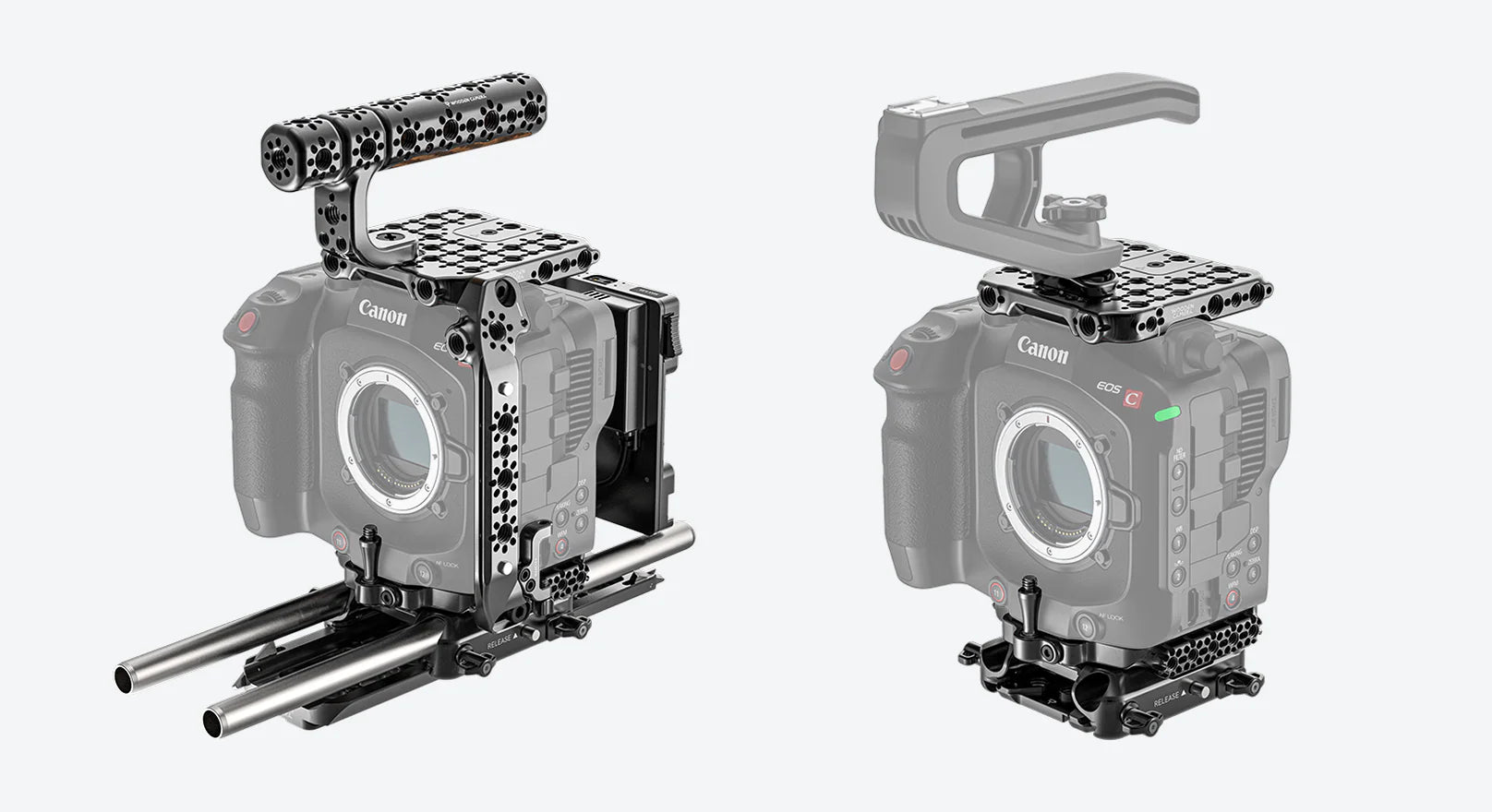 Available as an Elite Accessory System, Core Accessory System, or a la carte, these accessories for the Canon EOS C80 provide a professional-grade rigging solution for this versatile cinema camera. The range includes cages, handles, and mounting options designed to enhance functionality and usability while maintaining a lightweight, compact setup. These accessories are built with durable materials, ensuring reliable performance in demanding shooting conditions. Ideal for filmmakers, they allow for easy attachment of monitors, microphones, and other essential gear.