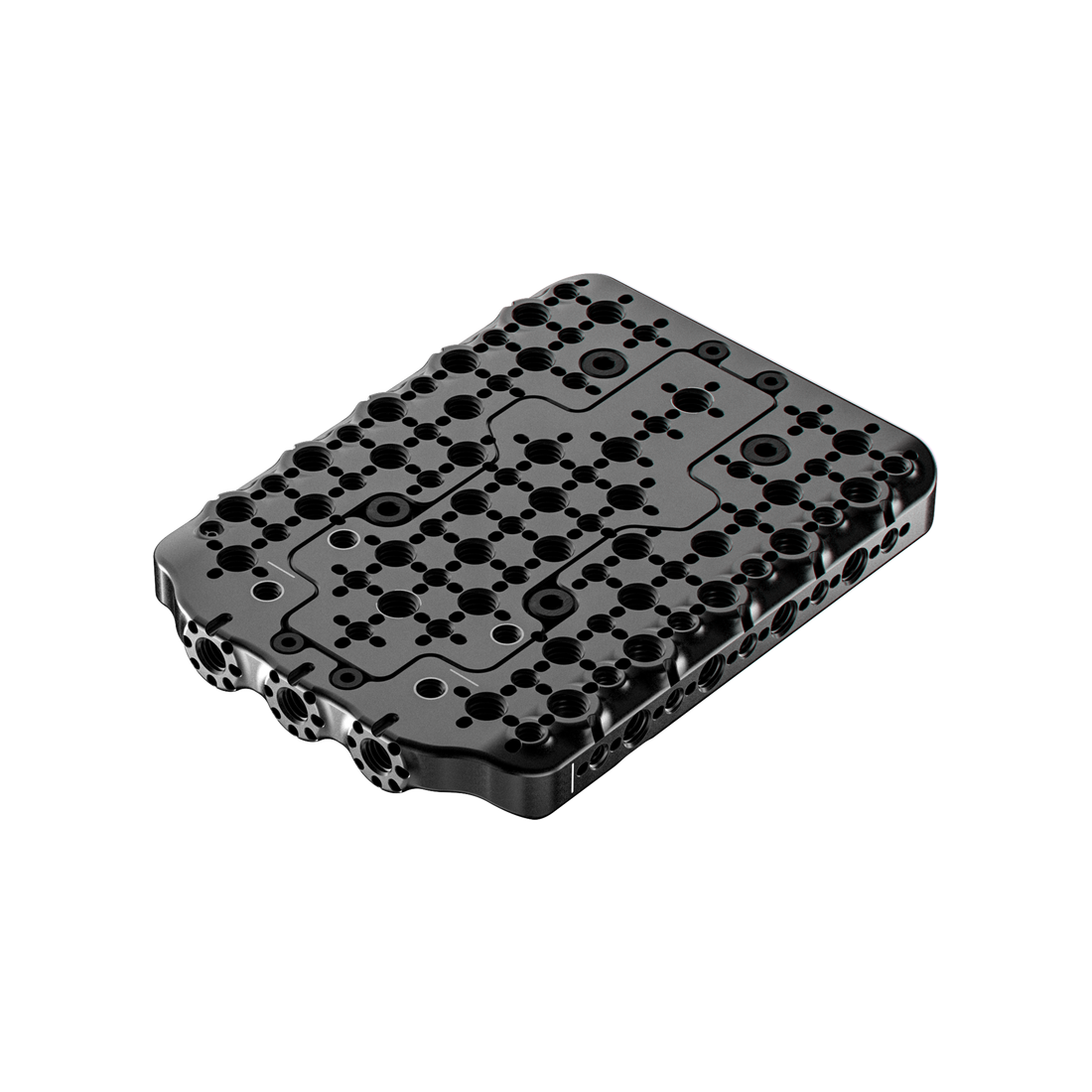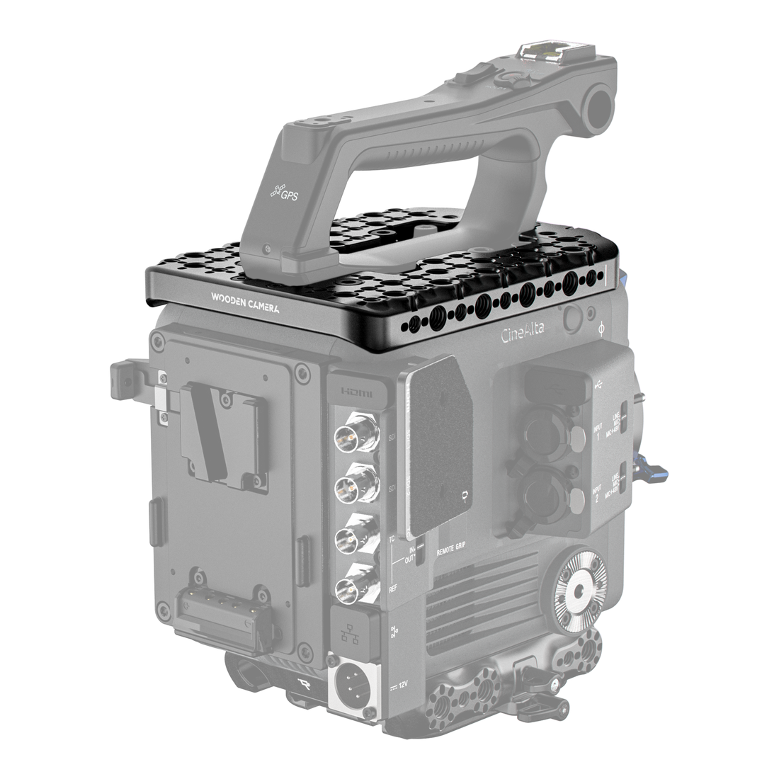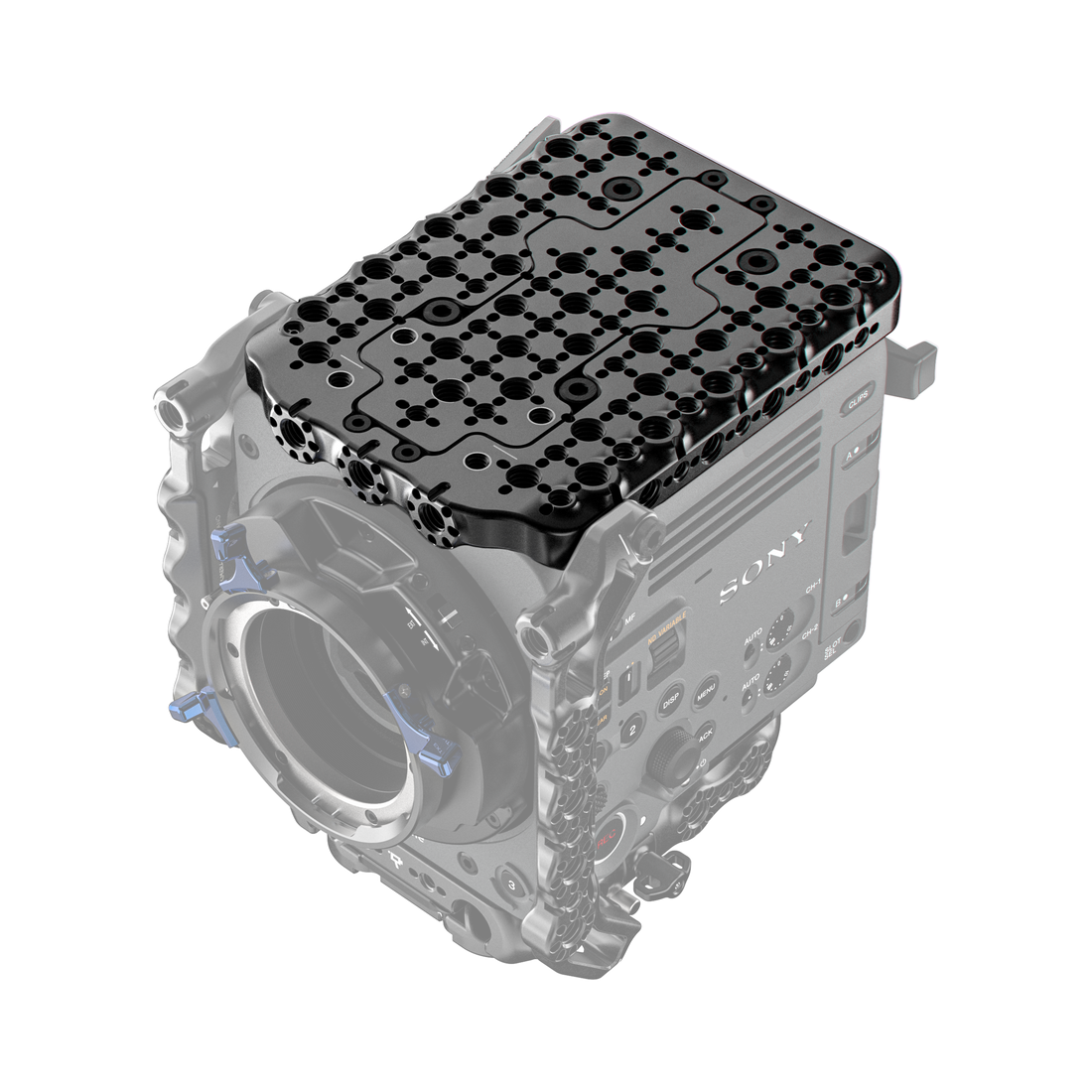 The Top Plate securely mounts to the Sony BURANO using four ¼”-20 screws and adds multiple ¼”-20 and ⅜”-16 mounting points along the top and sides of the camera. The Top Plate also accounts for spacing around the EVF connector on the assistant's side.