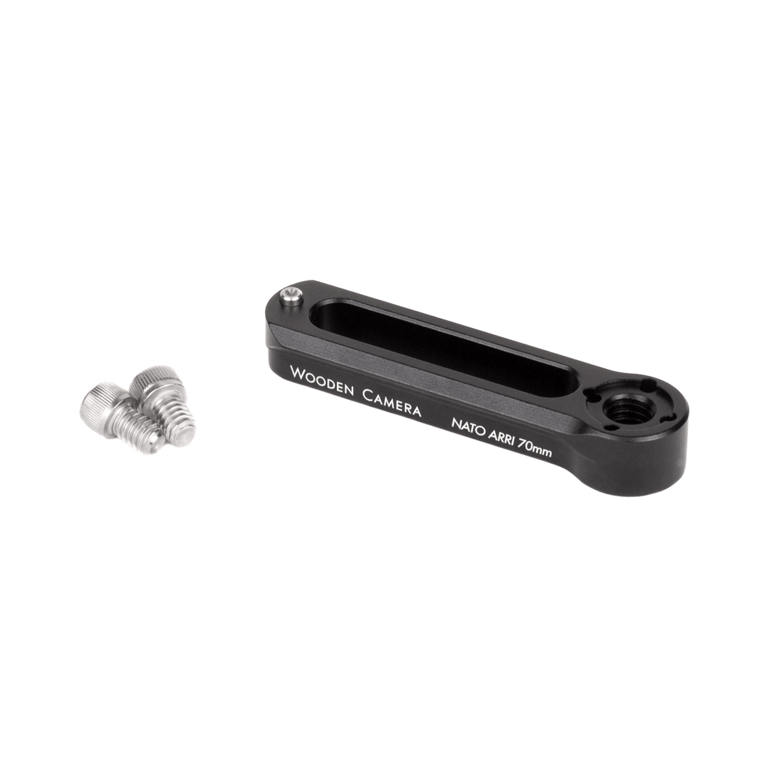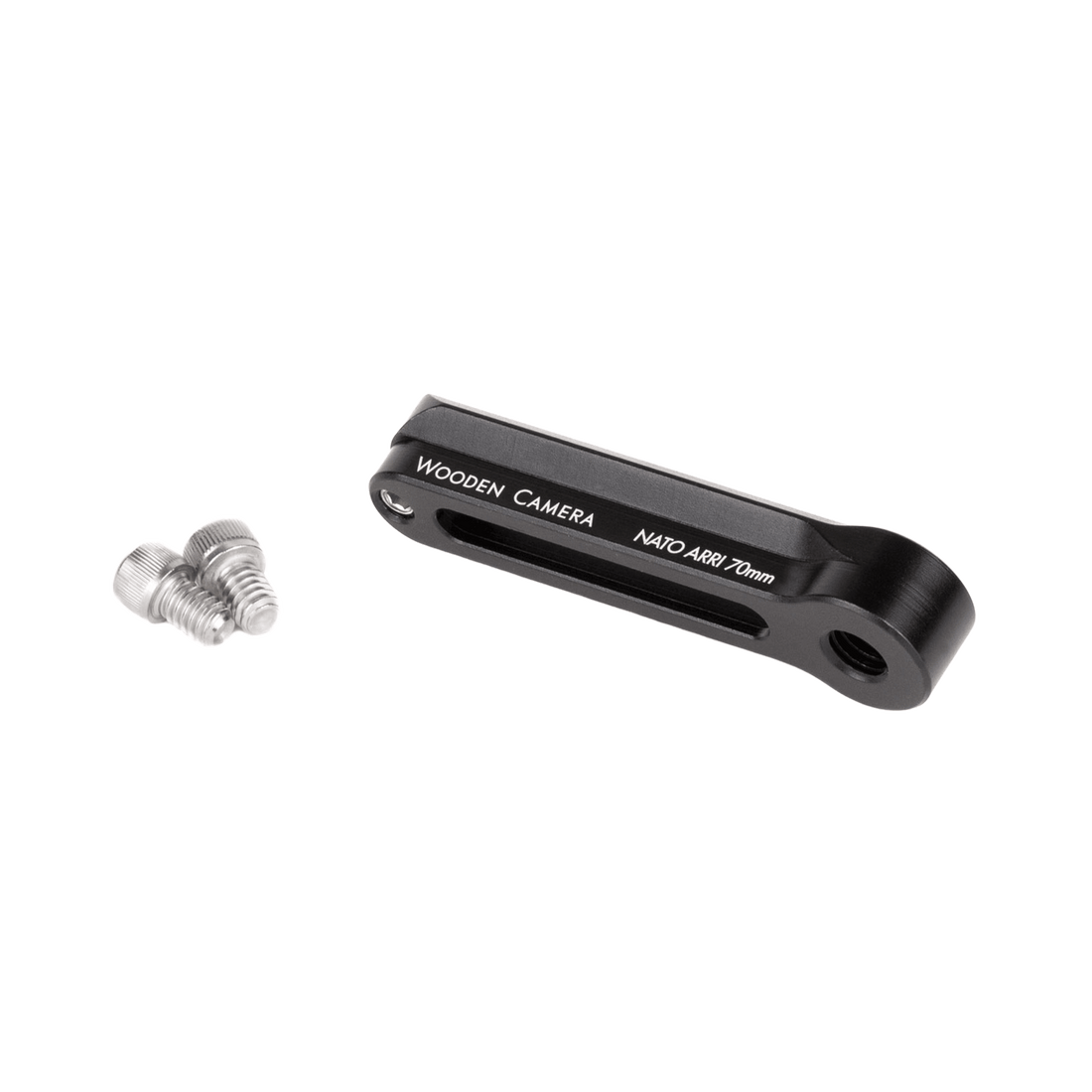 The NATO ARRI 70mm Rail (1.67" Screw Channel) is a NATO standard, 70mm long, quick release rail that attaches to any two 1/4-20 holes, up to 1.67 inches or 42.5mm apart center to center. The NATO ARRI Rail is a new version of our popular Safety NATO Rail which has a safety pin on one end and an ARRI accessory mount on the other which is great for adding our Microphone Shock Mount, Universal Offset Bracket, or other ARRI accessory devices. Great for attaching our new NATO Handle Plus v2, RED®, and third-party NATO accessories.