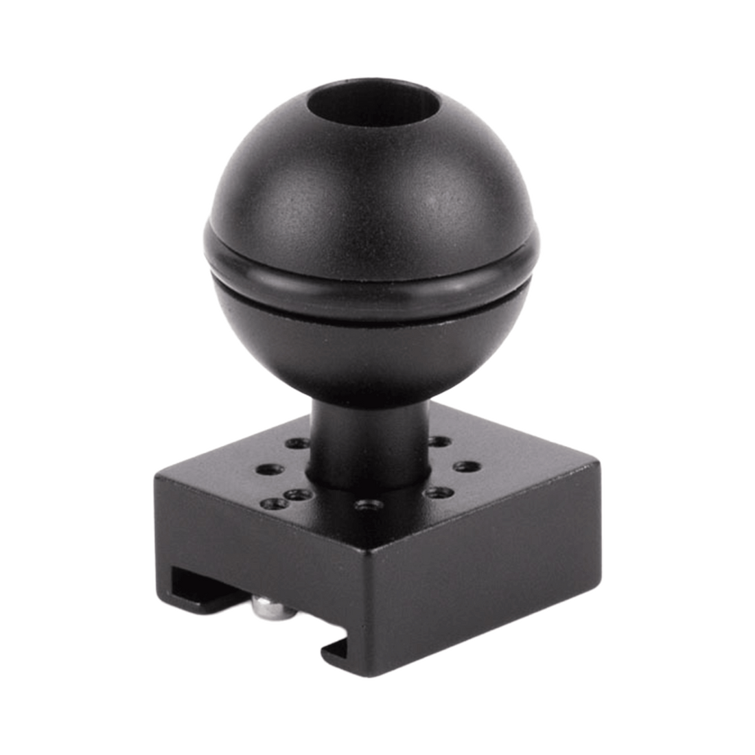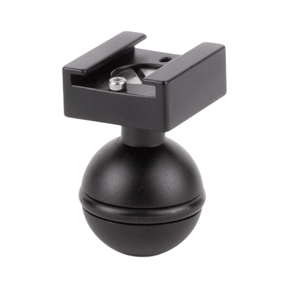 Ultra Arm Ball (Female Cold Shoe) is a component of our Ultra Arm lineup which accepts any shoe mount accessory and has a 25mm (1 inch) ball on the end. Ideal for use with Canon C300, C500, and C300mkII LCD units, on camera lights, microphone shock mounts, and many more items. This can be combined with our Double Ball Clamp and other Ultra Arm accessories to build custom configurations!