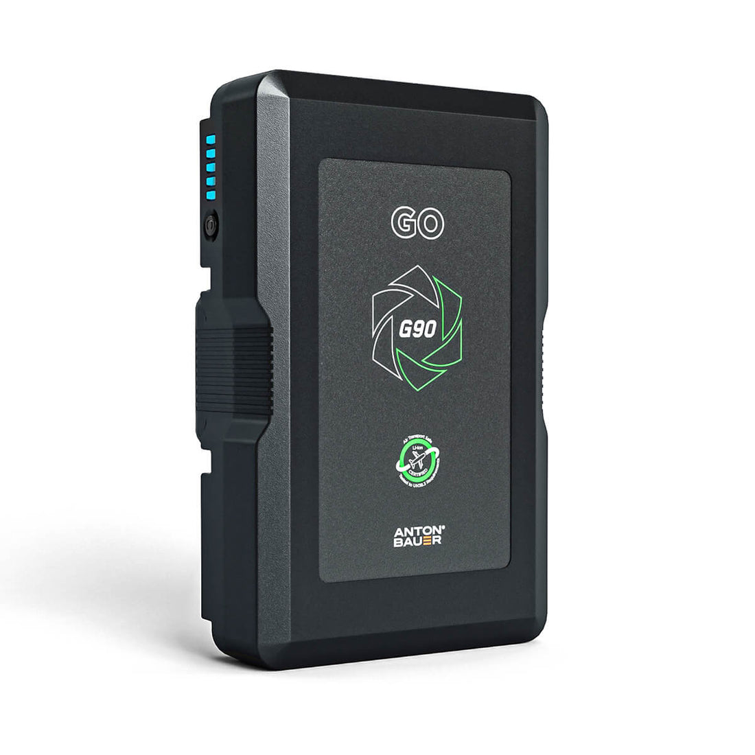 Power to create. GO 90 displays battery status at a glance with a built-in intelligent 5-step LED fuel gauge. Check the charge level on the battery with a simple tap of a button or see the battery level in 20% increments leaving camera operators free to focus on the action in front of the camera.