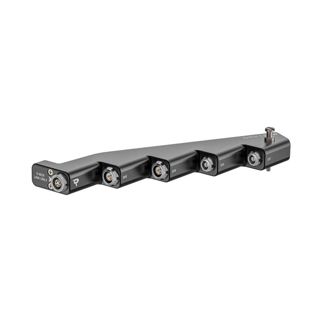 D-Box® Power Strip features contoured connectors that match the camera’s profile and connector angles, ensuring all cables can be installed without collisions. This Power Strip communicates with the camera, allowing for the use of any ARRI standard start/stop trigger. It attaches to the top right side of the camera via a 3-pin connector and includes a Tape Hook threaded hole, offering a secure and reliable connection.