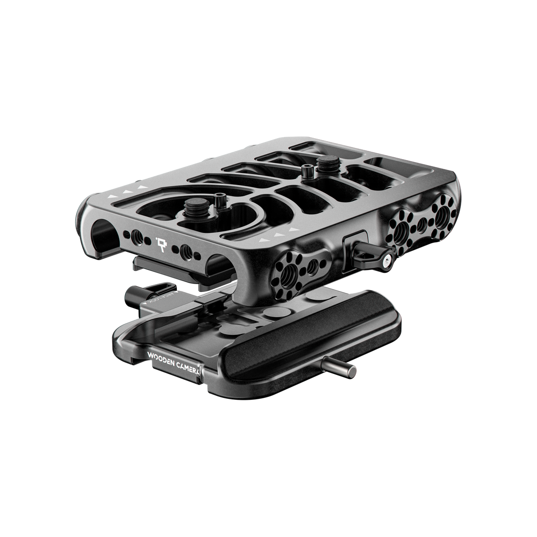 Two rod clamps, one on either side of the base plate, provide powerful friction to prevent torque and rotation from your lens motors. The Riser Plate features an intuitive wedge-clamp locking system with a thumb-screw for added security and comes with ⅜”-16 mounting points to attach the Bridge Plate.