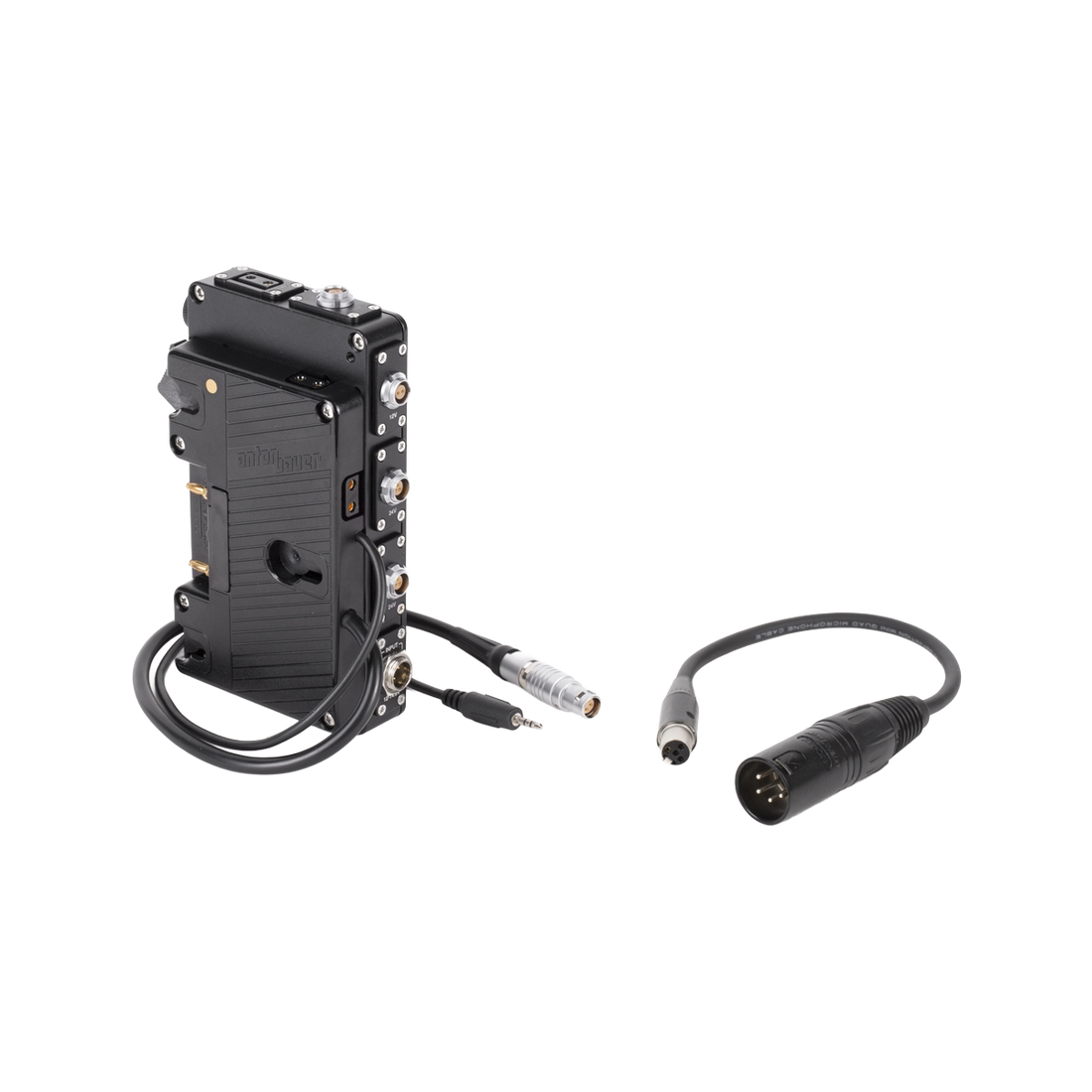 D-Box® (Canon C200, C200B, C300mkII, Gold Mount) is a custom version of our popular D-Box that adds power distribution, standardized remote start/stop, and hot swap abilities for the Canon C200, C200B, and C300mkII. Allows for up to 5 simultaneous outputs with a maximum draw of 3A per output (24V outputs 3A max combined) and 10A total draw limited by an easily accessible fuse. Two 12 inch (30cm) cables exit the power plate with one going to the 4pin power plug and the other going to the Remote port. There is a LANC control board inside the D-Box that communicates with the camera so that any ARRI standard start/stop can be used in the 3pin Fischer ports.