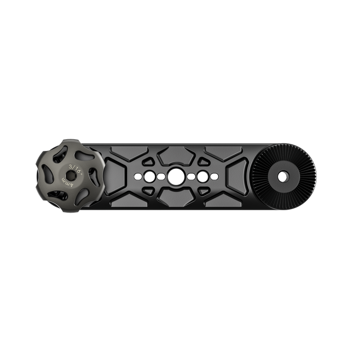 The Knob on this Extension is made from stainless steel and coated in DLC for added strength with finger grooves for easy tightening. The Knobs have a hole in the center for a 3/16” or 4mm hex tool for extra tightening if needed.
