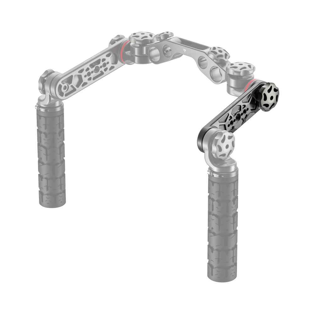 Each extension incorporates a 5-degree offset allowing the full kit units to fold down for storage and 32mm rosettes take the industry standard M6 screws to tie in rosette accessories. ¼”-20 and ⅜”-16 mounting points are added along the center of the extension for attaching accessories like monitors.