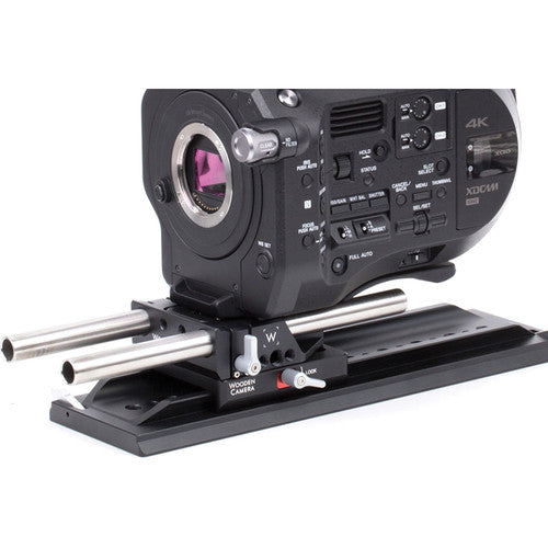 Fixed Base (FS7) is a fixed baseplate for the Sony FS7 and Sony FS7mkII that provides lightweight 15mm pass through rods. The baseplate can attach to any tripod plate or ARRI standard bridgeplate such as Unified Bridgeplate (19mm) or Unified Bridgeplate (15mm Studio). When studio rods are not needed, a Dovetail Clamp can be added instead to interface with 2060 Dovetails, Safety Dovetails, or Shoulder Rigs.