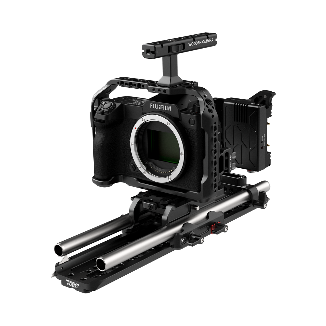 The Fujifilm GFX100S Unified Accessory Kit (Pro, Gold Mount) is a camera support package designed for the Fujifilm GFX100S camera. The Fujifilm GFX100S unified accessory package features our Fujifilm GFX100S Camera Cage – a form fitting camera cage for secure camera accessory attachment. This kit also includes the Mini Top Handle (3/8"-16), LW 15mm Baseplate for Fujifilm GFX100S, Safety Dovetail (12") – which interfaces with the ARRI dovetail slot on the bottom of the LW 15mm Baseplate – two 15mm Rods (12”), Micro Battery Slide Pro (Gold Mount), and D-Tap Fujifilm NP-W235 Battery (Dummy).