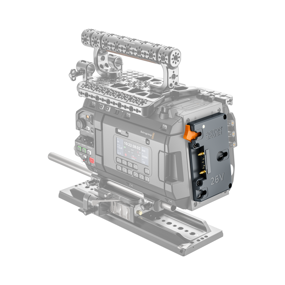 Add the option of a Gold Mount Plus battery to the Blackmagic URSA Cine 12K/17K. This Anton Bauer battery plate utilizes the Molex connector on the back of the plate for a seamless connection to the camera and attaches directly to the back of the camera body with the included battery plate screws.