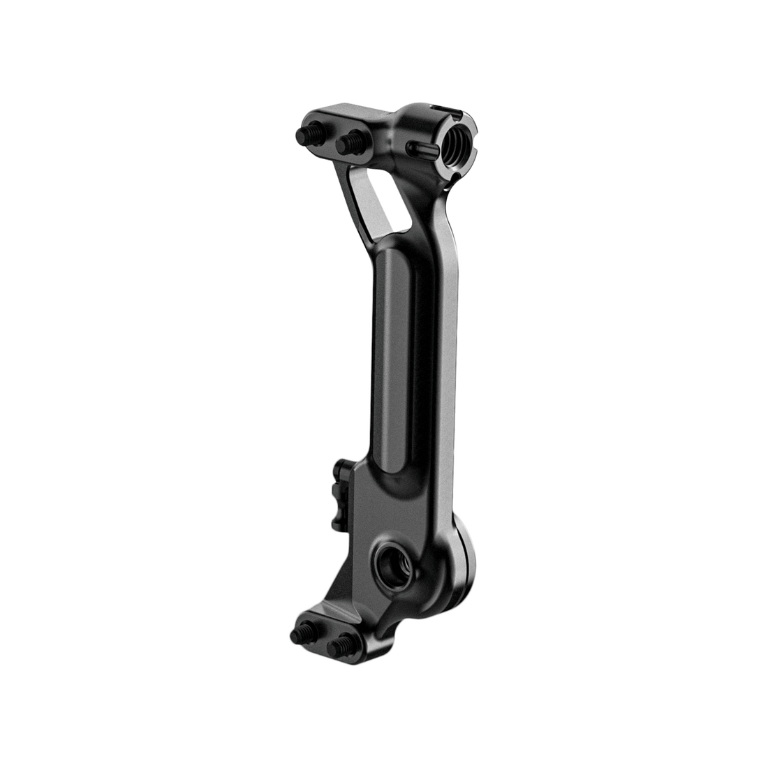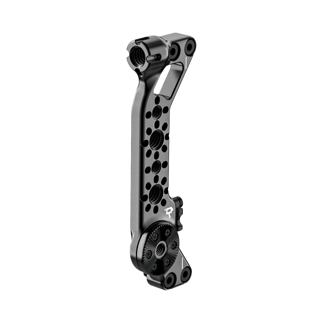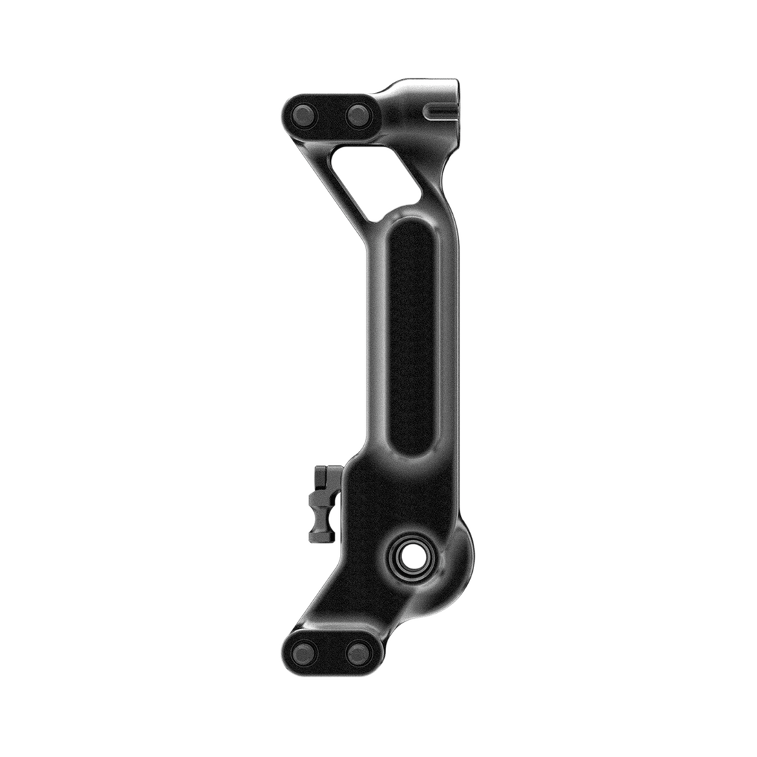 Side Rail that mounts to the left side of the sensor body, featuring a DLC-coated stainless steel rosette, a forward-facing ⅜”-16 mounting point, 2 x ⅜”-16 and 2 x ¼”-20 mounting points, a sensor-plane mark, and a swing-out tape hook.