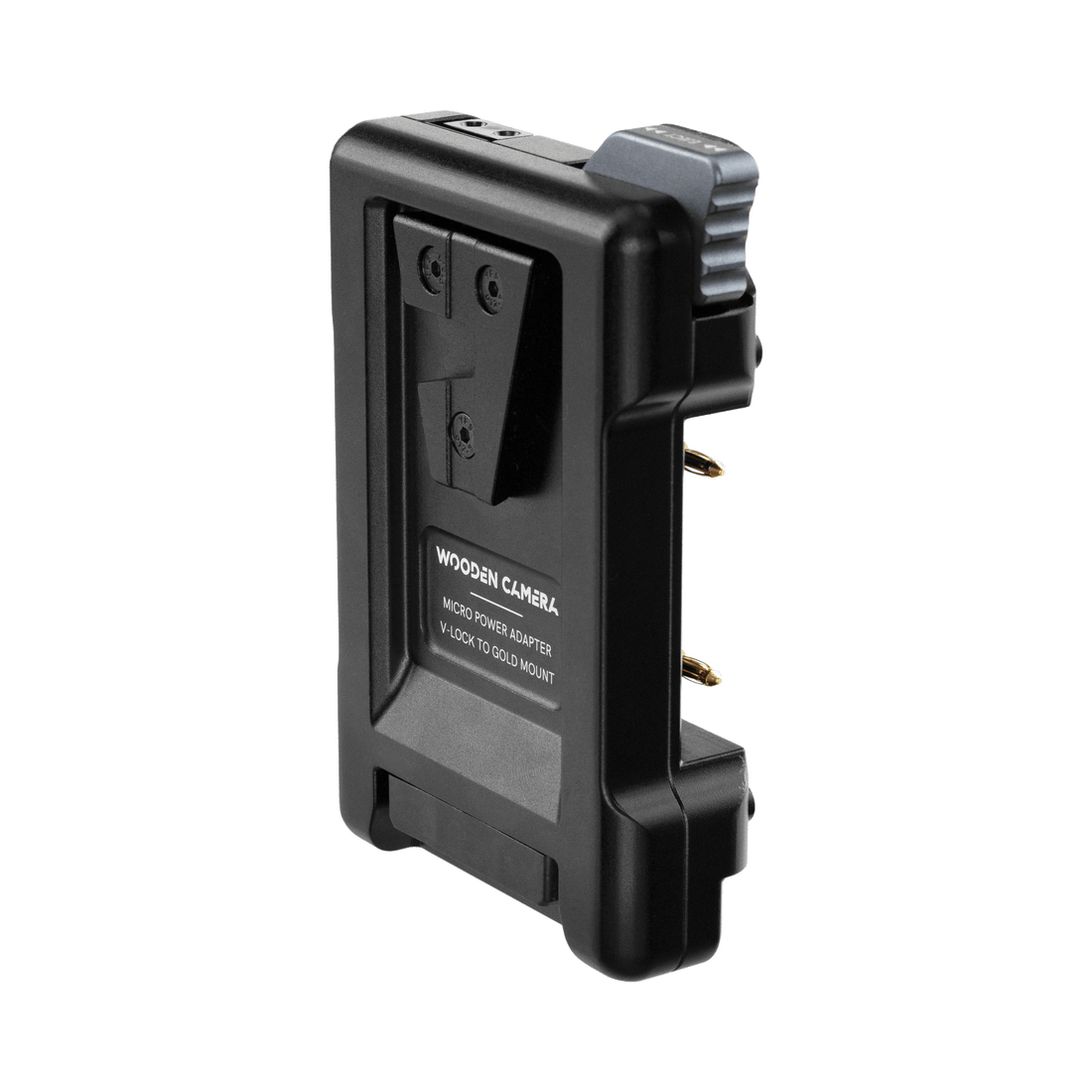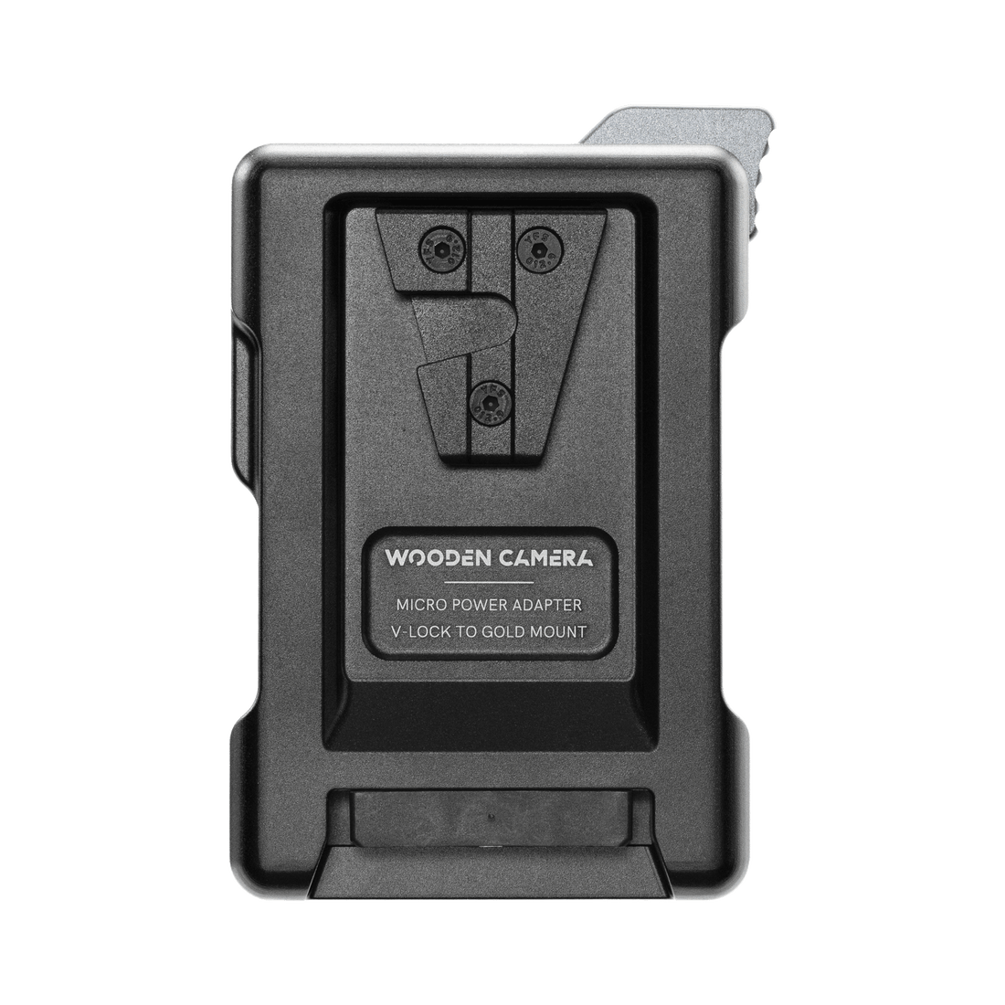 Micro Battery Plate Adapter V-Mount to Gold Mount converts a V-Mount system to accept a Gold Mount battery. It is made from anodized aluminum which ensures both durability and secure battery mounting.