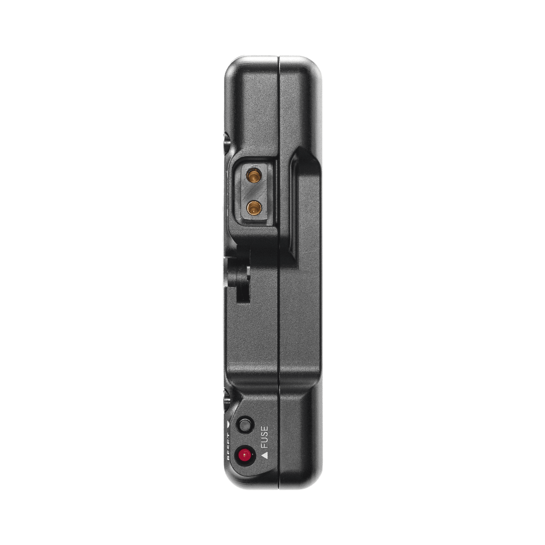 This power plate features 2x D-Taps for accessory power at battery voltage (11-17V) supported by a resettable 5.8A digital E-Fuse. Should the user exceed the set current for accessories, only the accessory outputs are disabled, leaving the camera running normally. Once the current load has been reduced by either removing accessories or reconfiguring, the reset button can be pressed to enable accessory power again. It is compatible with both micro and full-sized cinema batteries.