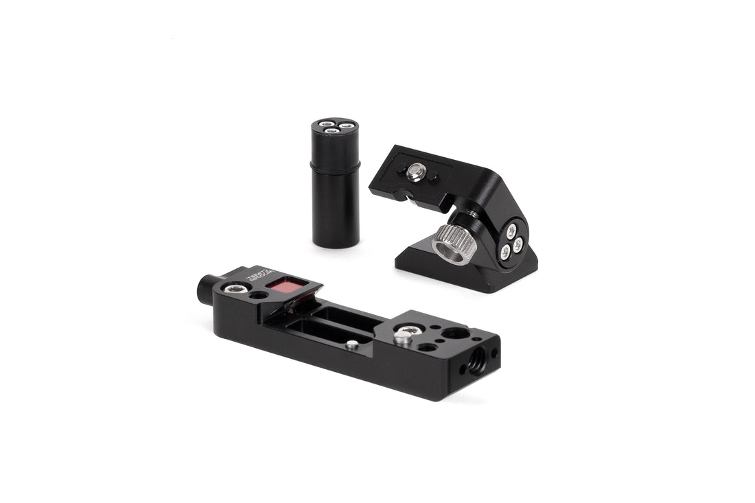 Monitor Hinge Kit for RED KOMODO-X & KOMODO features a Top Mount that attaches to the camera body using two captive 3/4" screws and provides a center ARCA Swiss dovetail clamping slot along with 1/4-20 and 3/8-16 threaded holes for attaching accessories.