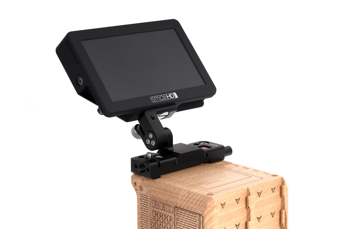 Monitor Hinge can attach into ARCA slot and provides a direct 1/4-20 mount for SmallHD monitors. Included rubber pad can be added for attaching third party monitors. A 15mm mounting spud is included and allows monitor arm to be quick released and attached onto Top Handle (RED® Komodo) which is sold separately.