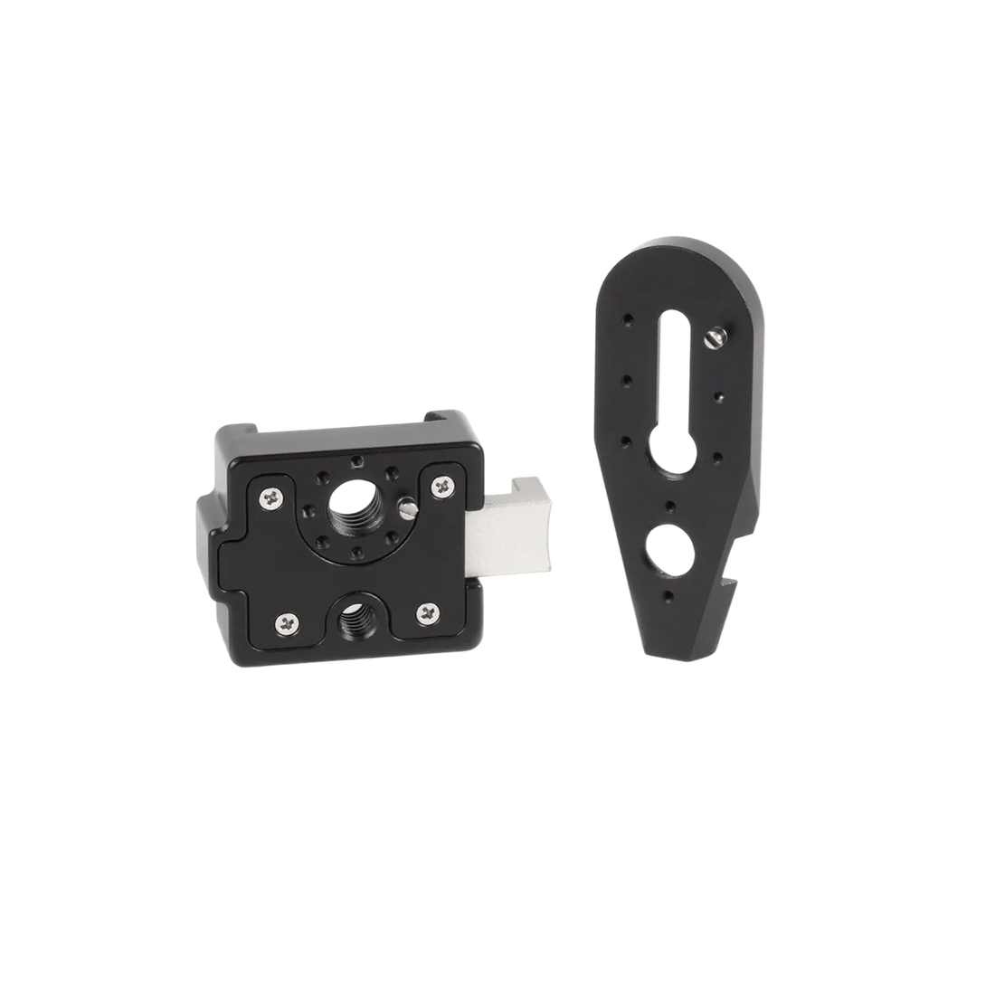 The Offset V-Lock Accessory Wedge (Screw Slot and ARRI Accessory Mount 3/8"-16) is the dovetail portion of the kit and can bolt into any ARRI standard accessory mount or 3/8"-16 hole, allowing for an offset of up to 1.5 inches (38mm).