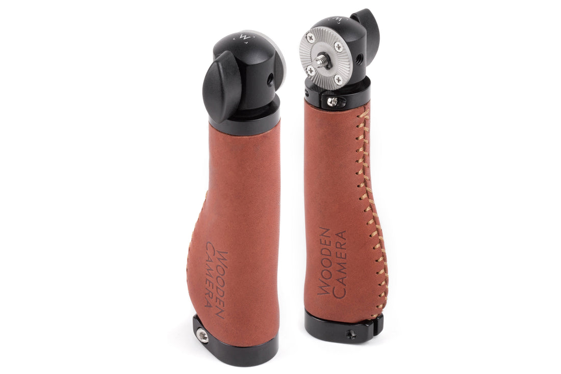 A pair of handles with ARRI style, 60 tooth rosette and M6 thumbscrew. Attaches to Rosette Arm, Universal ARRI Rosette Rod Bracket, Crossbar v2, Crossbar v3, or existing ARRI equipment. Available in Rubber or Brown Leather.