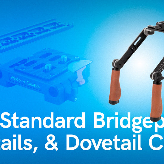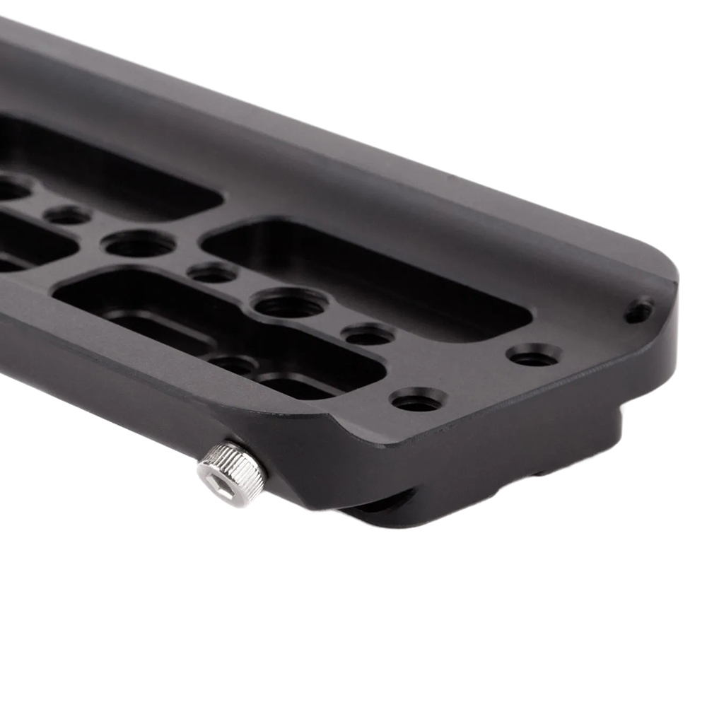 8" ARRI standard dovetail with safety catch on one end to prevent accidental camera removal. Threaded 1/4-20 and 3/8-16 holes for accessory mounting and tripod attachment. Attach to Shoulder Pad for custom handheld configurations
