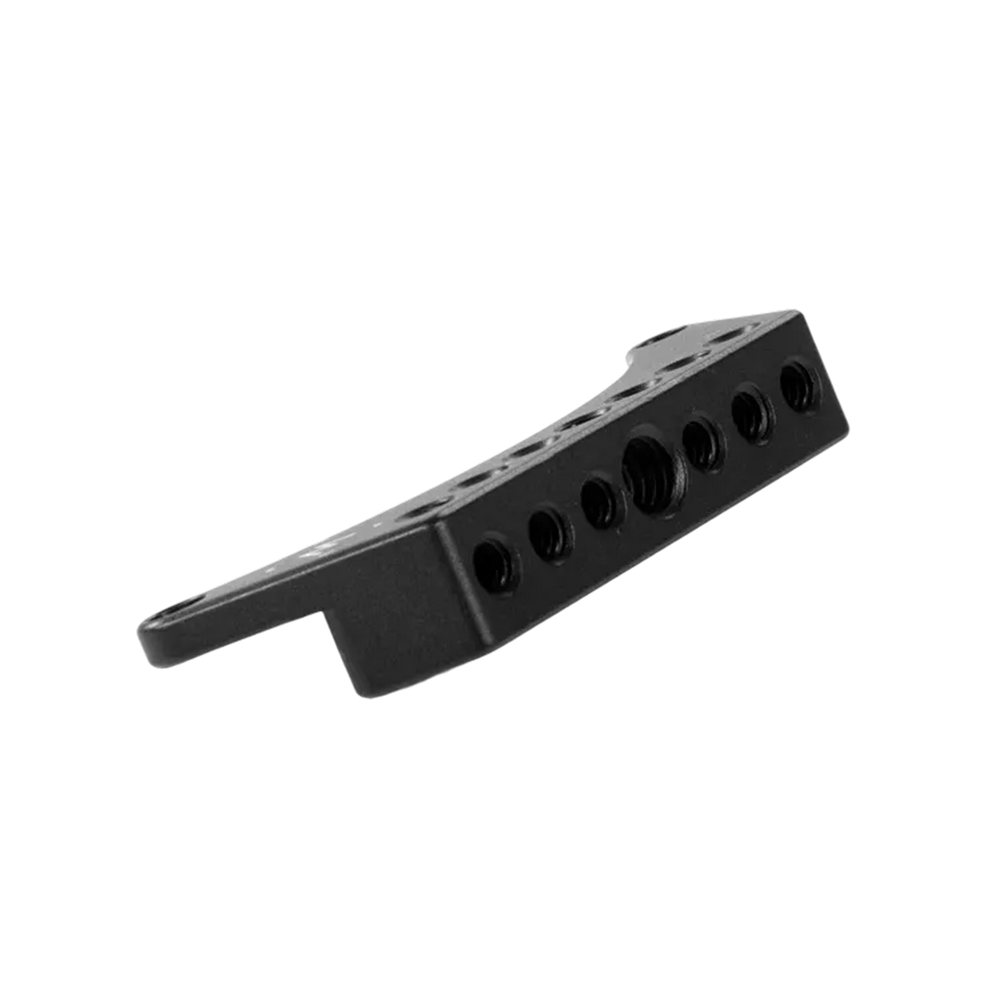 Top Mount (Red One) provides rows of 1/4"-20 holes in RED® standard spacing allowing Rod Clamps, Handles, Battery Mounts, Safety NATO Rails, UVF Mount, and more to be attached. Additional 3/8"-16 holes on top center.