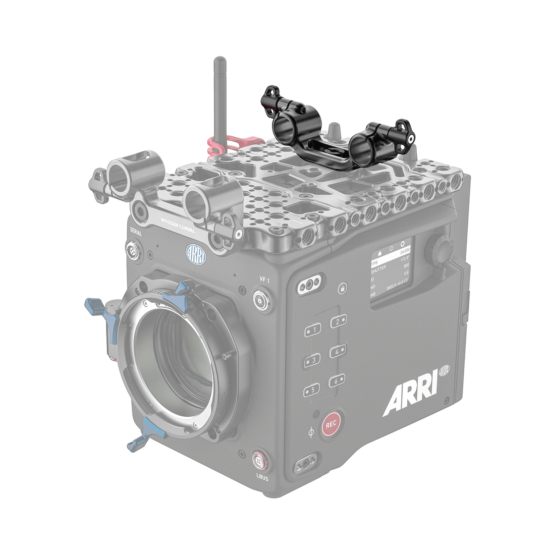 Lens-centered. 15mm Rear Rod Clamps with individual tightening screws offer a mounting location for an EVF, lens control motors, or distance measuring devices. Integrates with Front Dual Rod Clamps for more stability and flexibility with longer rods.