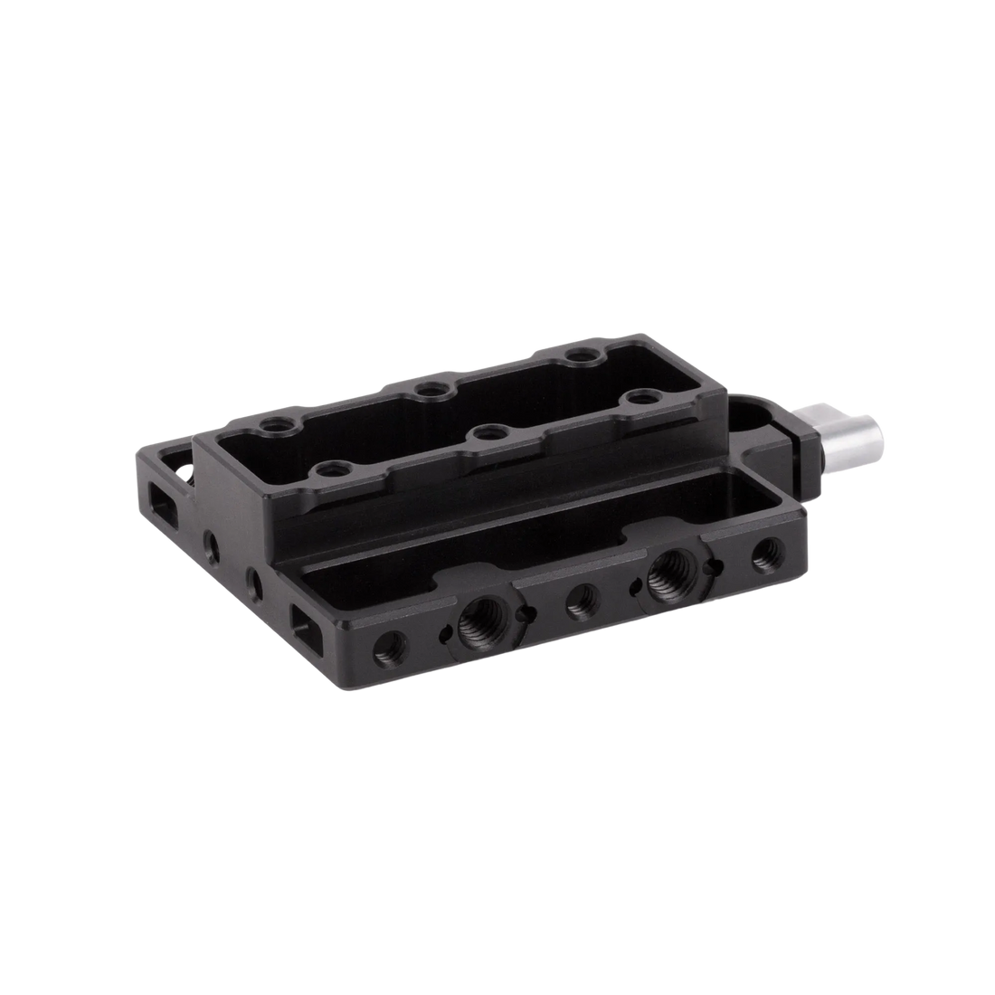 Unified Baseplate Camera Dovetail (Sony FS5, Panasonic EVA1, VariCam LT, VariCam 35) is a plate which can attach to the base of those cameras and when combined with the Unified Baseplate Core Unit (No Dovetails), provides 15mm lightweight rods at the correct lens height. The slotted design allows multiple included 1/4"-20 and 3/8"-16 screws to be attached to the camera bottom up to 70mm apart center to center and non-slip, rubber surface prevents the camera from twisting. The bottom portion of this Unified Camera Dovetail features an ARCA Swiss standard dovetail shape, our patented serrated dovetail design, and 1/4"-20 threaded holes for attaching to gimbal mounts and other devices. Additionally the 15mm vertical rod opening can be combined with our Unified Lens Adapter Support Kit components to attach adapters like Wooden Camera, Metabones, etc. securely onto a camera body.