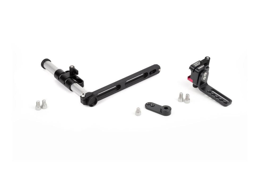The included 15mm Tube Clamp bolts directly to two 1/4-20 screw holes spaced between 25mm and 36mm center to center. Can attach directly to RED® Dragon/Epic/Scarlet and AJA CION. Can also attach to other cameras via Wooden Camera cages and cheeseplates.