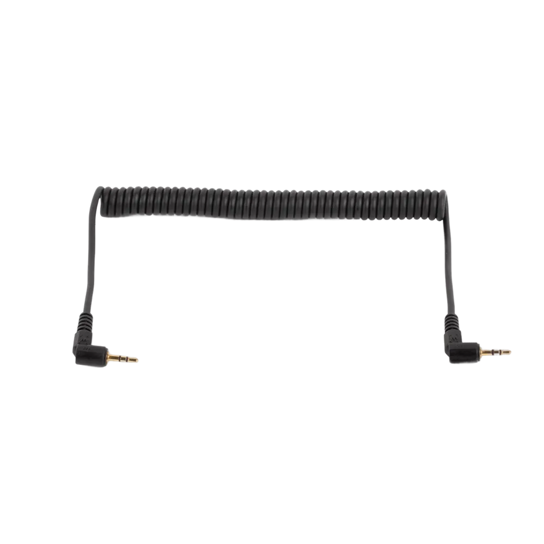 2.5mm TRS right angle connector to 2.5mm TRS right angle connector with coiled cable. Great for connecting LANC control to camera. At rest, the cable measures 12 inches (30.5 cm) and stretches up to 30 inches (76.2 cm).
