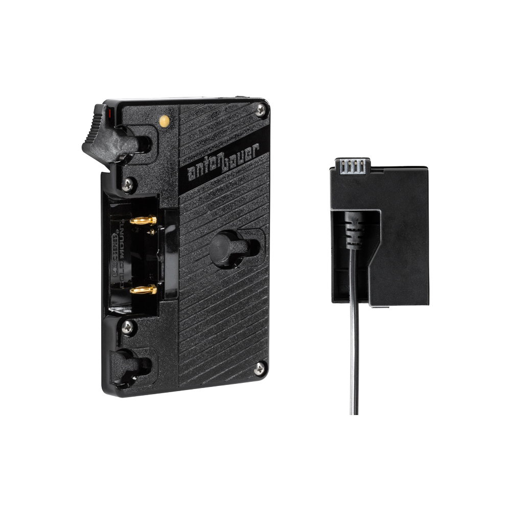 Wooden Camera brand Gold Mount plate utilizing an Anton Bauer Mount and Canon T5i DC connector. Works with Canon T2i, T3i, T4i, and T5i. Voltage regulator integrated in the plate provides constant 8V to camera. 2x D-Taps on plate provide 12-16V depending on battery connected.