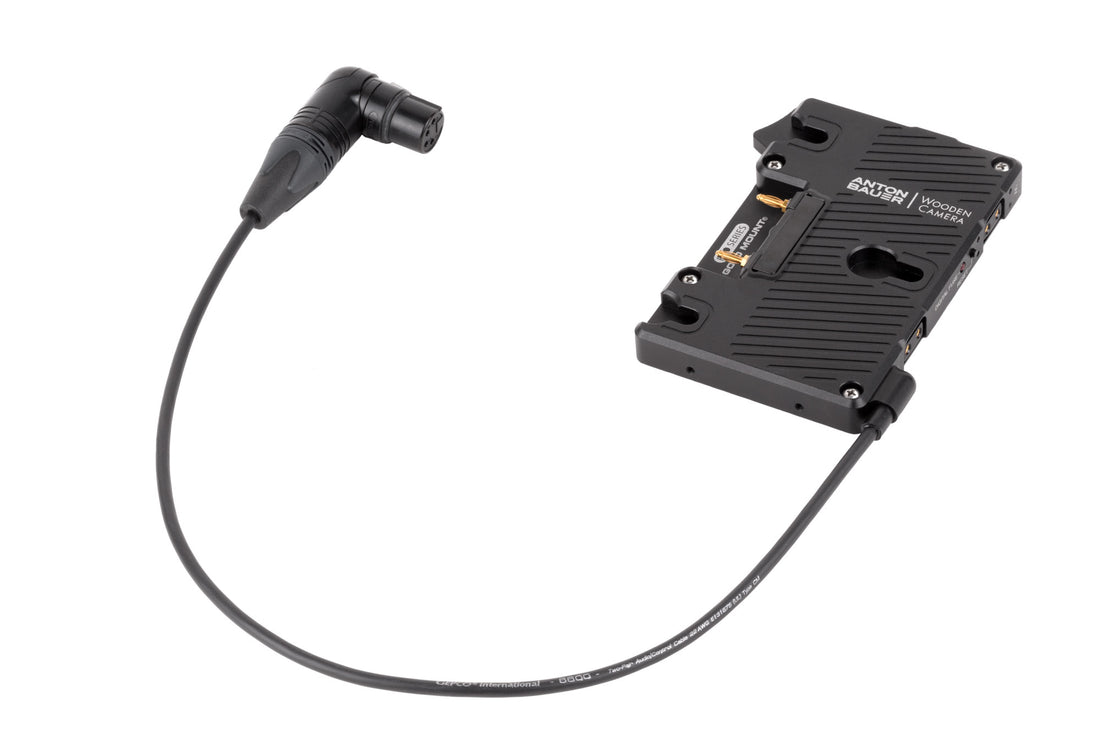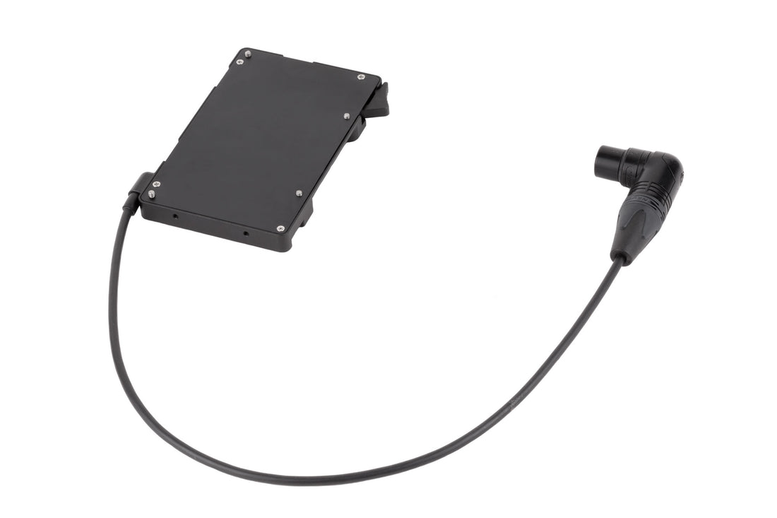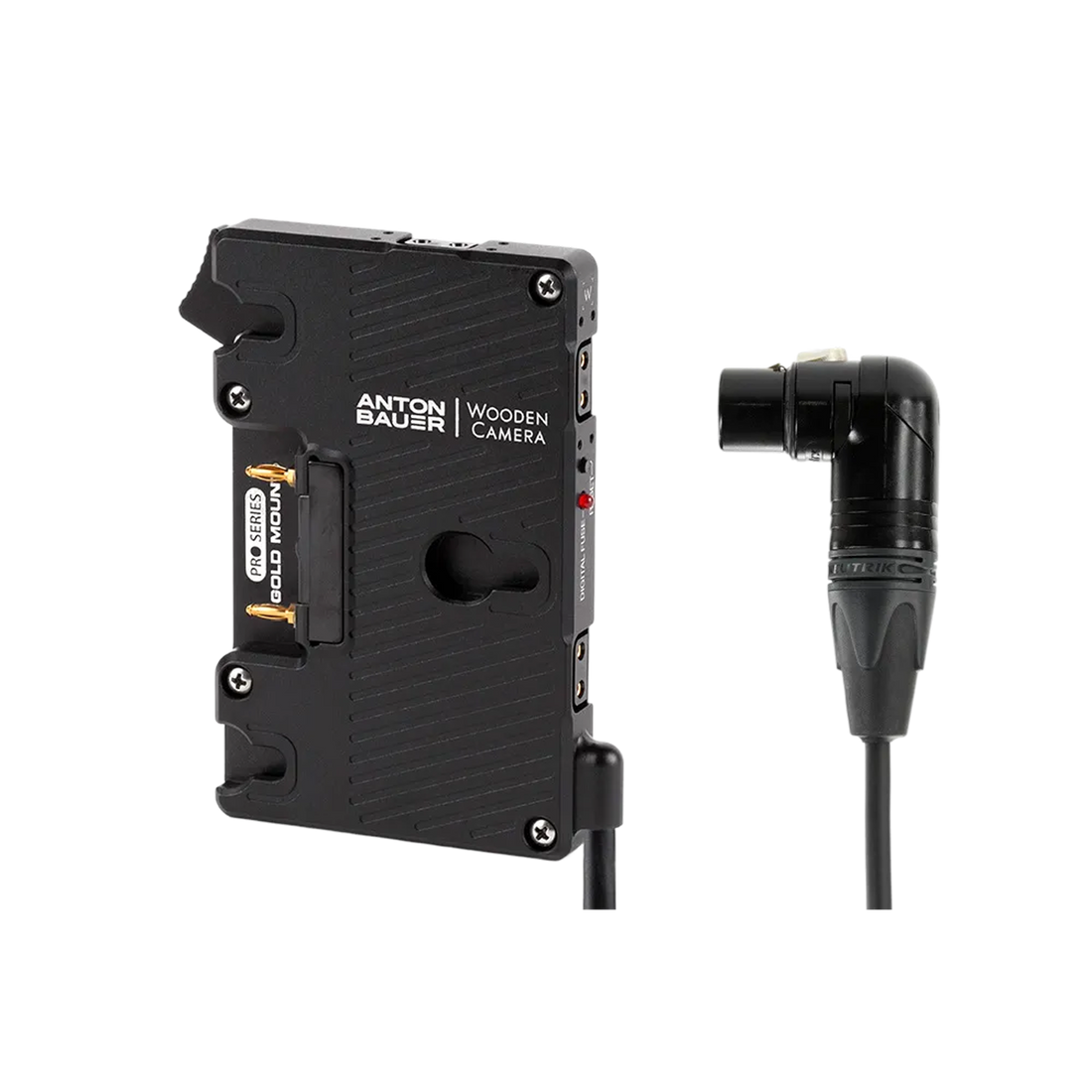 WC Pro Gold Mount (4pin XLR Right Angle) is a metal power plate, created in partnership with Anton Bauer, and has a rugged aluminum body for durability and secure battery mounting and a right angle 4pin XLR. Compatible with Digital Bolex, Blackmagic Studio Camera, Sony F55/F5, Canon C500mkII and many more. Features 3x D-Taps for accessory power at battery voltage (12-16V), a digital fuse with reset button, rear cover plate, and captive mounting screws.