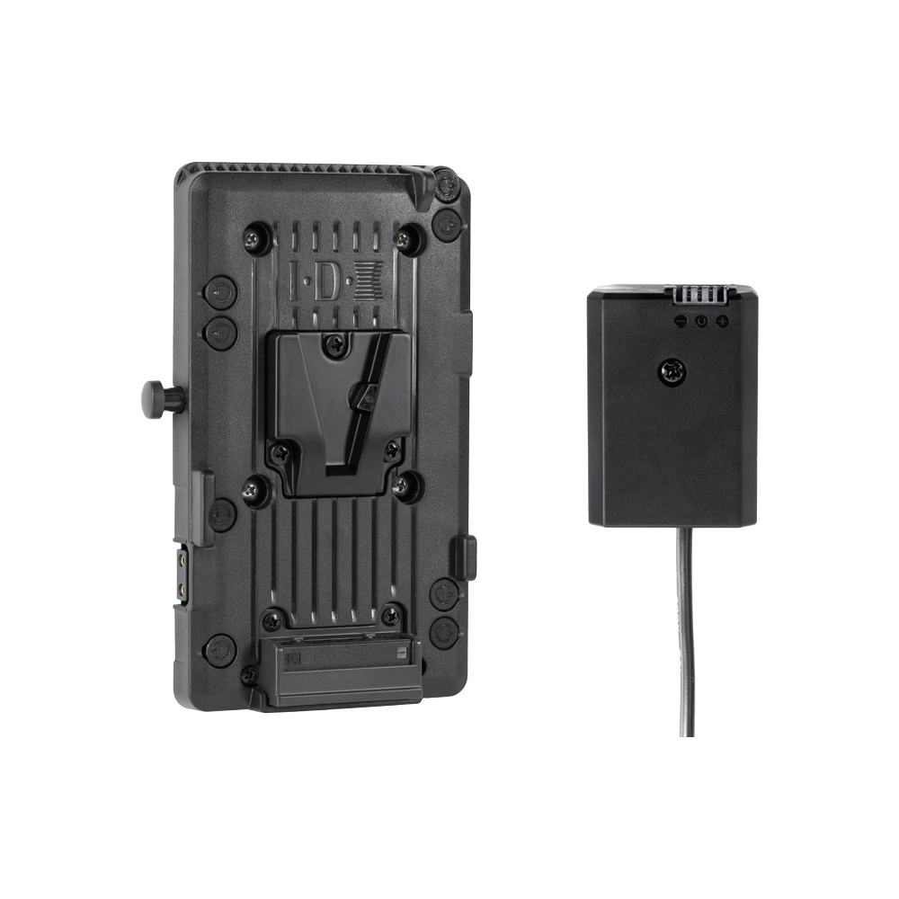Wooden Camera brand V-Mount plate utilizing an IDX V-Mount and Sony A7 connector. Works with Sony A7, A7r, A7s, A7rII, A7sII and other Alpha compatible cameras. Regulator integrated in the plate provides correct voltage to camera.